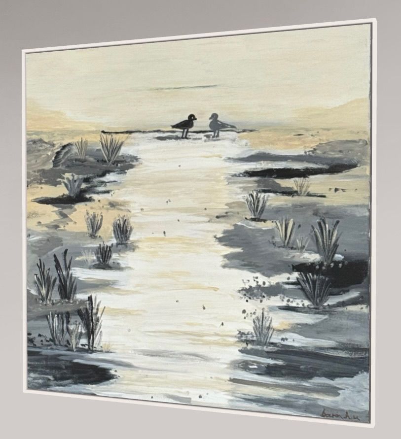 Leinwand mit Echt-Holzrahmen gerahmt.